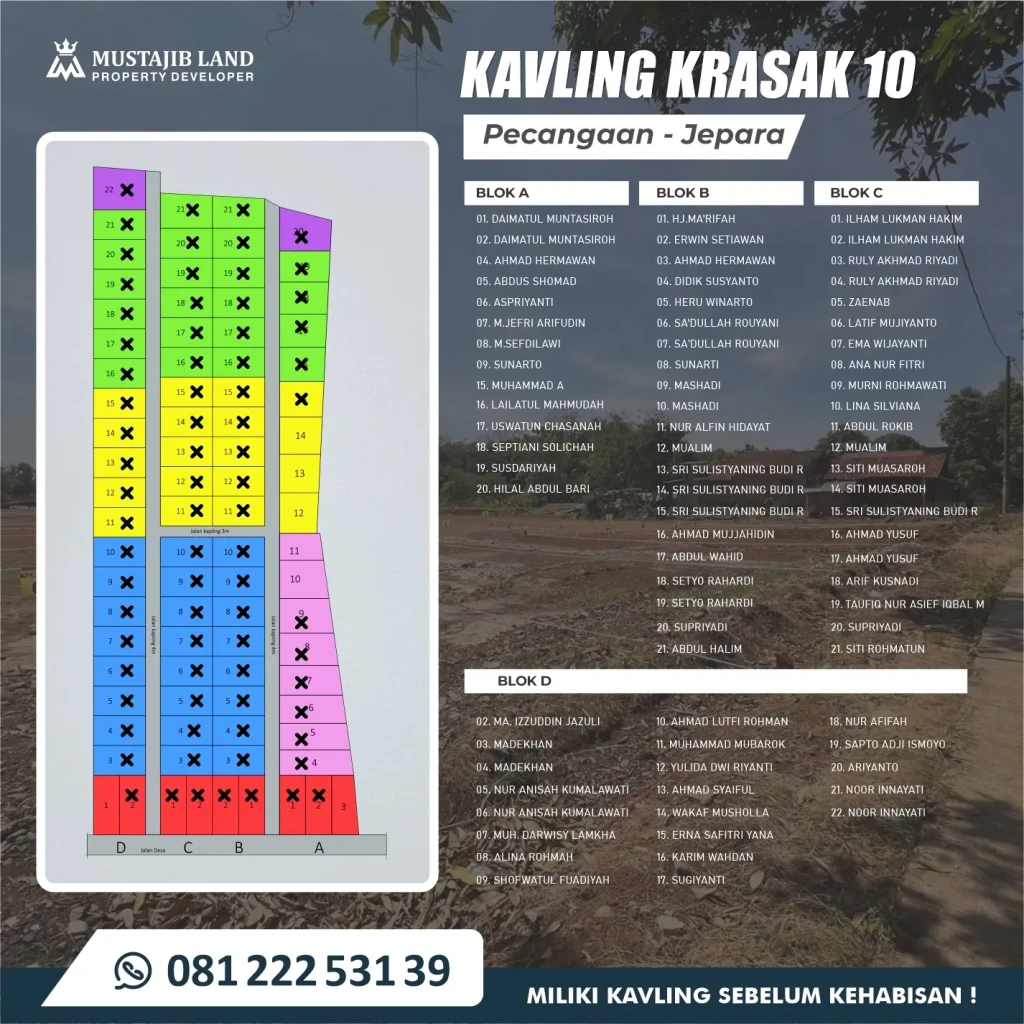 Ingin punya rumah sendiri di lokasi strategis dan tenang?. Tanah Kavling Krasak 10 di Desa Krasak, Pecangaan – Jepara adalah pilihan yang tepat!